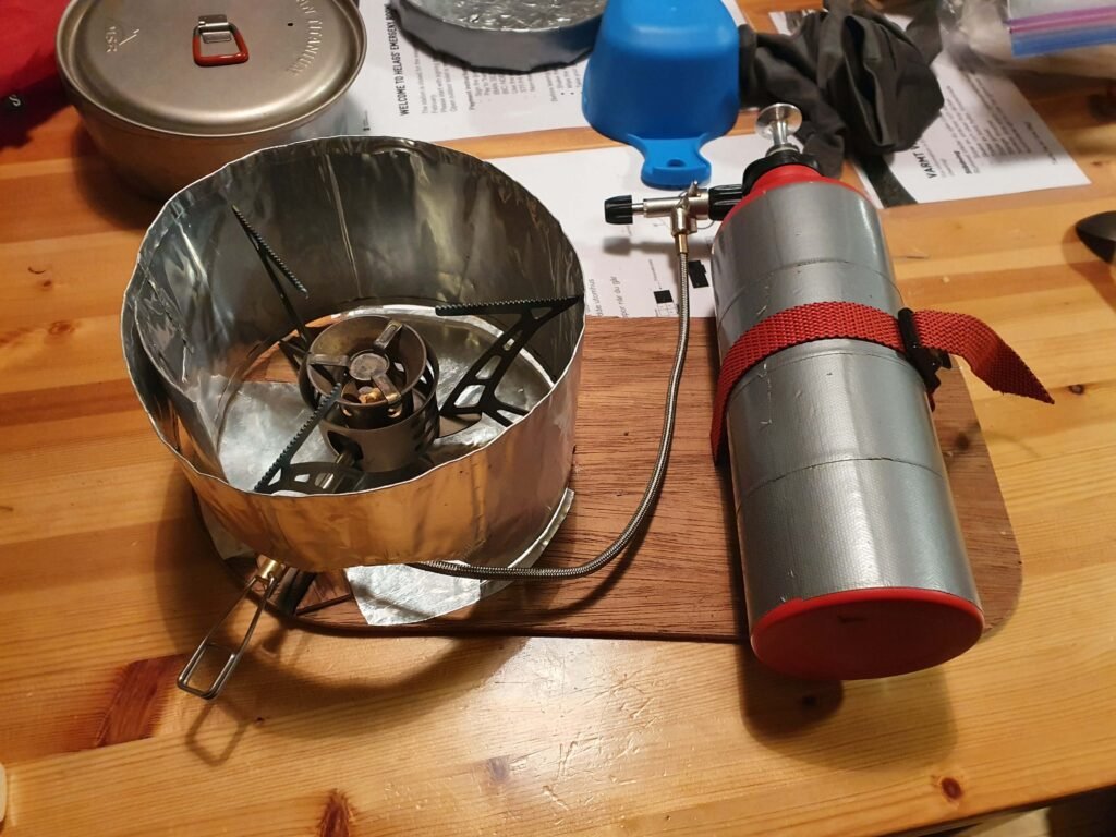 Toimin käytännössä samoin, siis tukahdutan keittimen lumella, mutta keitintä ei tarvitse siirrellä minnekään, kattilat keittimen päällä ei haittaa eivätkä kuumat vedet kaadu syliin vaikka joutuisin tökkäämään lunta keittimen päälle. Keitin sihahtaa sammuksiin heti, eikä se kärsi lumesta lainkaan. Voit pohtia itse, kumpi on helpompaa tehdä kovan myrskyn aikana, keittimen lämmittämässä teltassa alipukeutuneena.